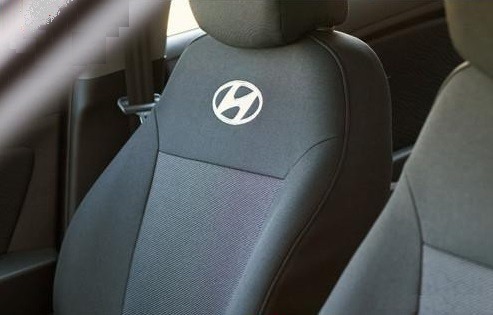 - Водійський і пасажирський чохли у верхній частині мають вишитий логотип марки авто .